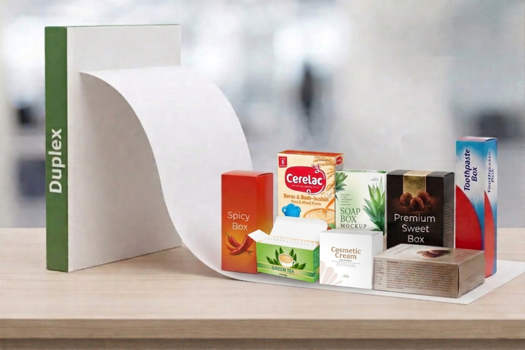 A versatile and cost-effective packaging solution, Duplex Board features a coated white surface on one side with either white or grey backing. It offers excellent printability and is widely used across various industries for consumer goods packaging.